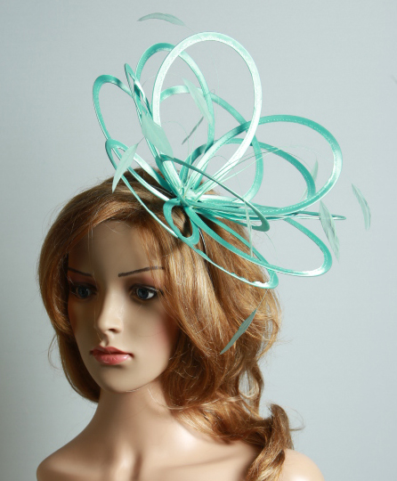 A satin loop style, medium size fascinator hat adorned with coque feathers.