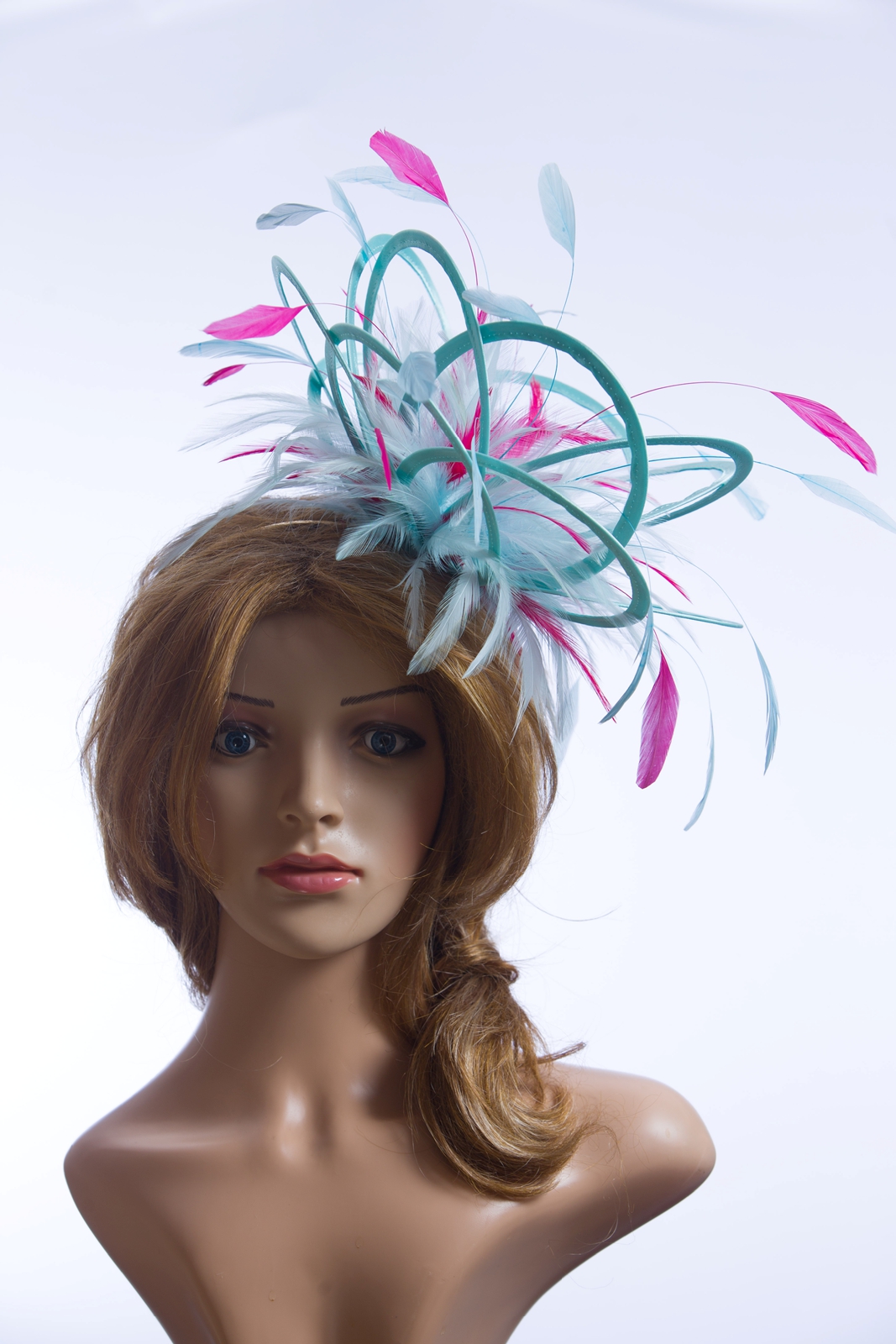 A medium fascinator hat made with satin loops and adorned with coque and hackle feathers. Can be set on a slim metal headband in gold or silver. I can make in any colour combination from the drop down boxes.