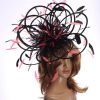 Black and Coral Pink Large Satin Feather Fascinator hat with Chevron Cut Coque Tails – Elise