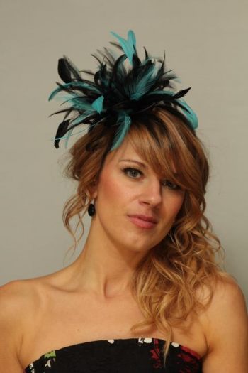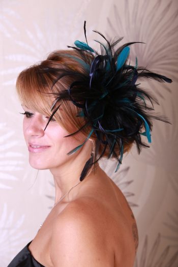 Black and Turquoise Satin Feather Small Fascinator hat – Abbie