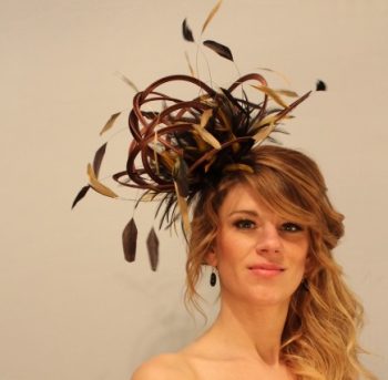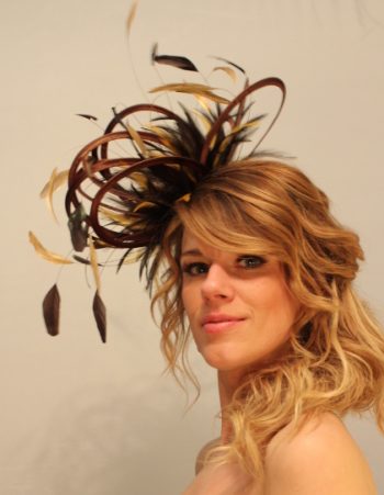Brown & Gold Medium Satin and Feather Fascinator hat – Martha