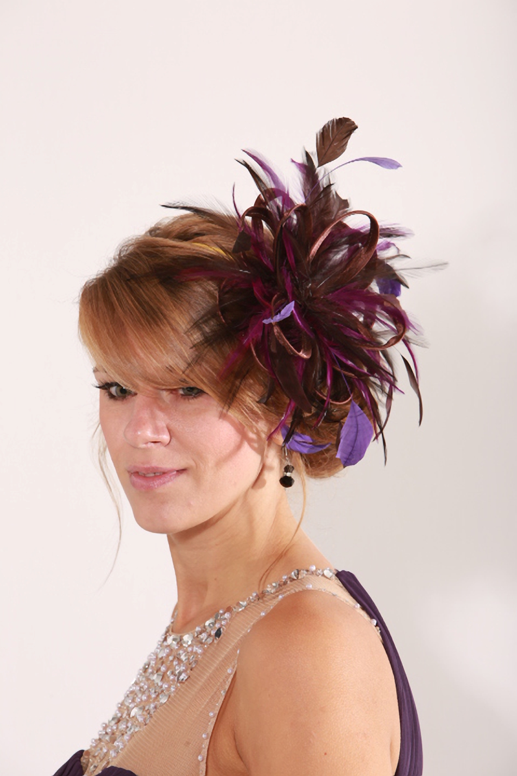 Burgundy Wine and Purple Small Satin Feather Fascinator hat – Abbie