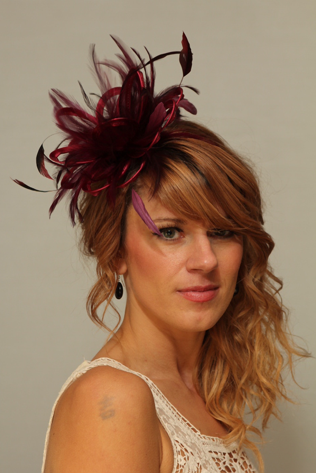 Burgundy Wine Small Satin Feather Fascinator hat – Abbie