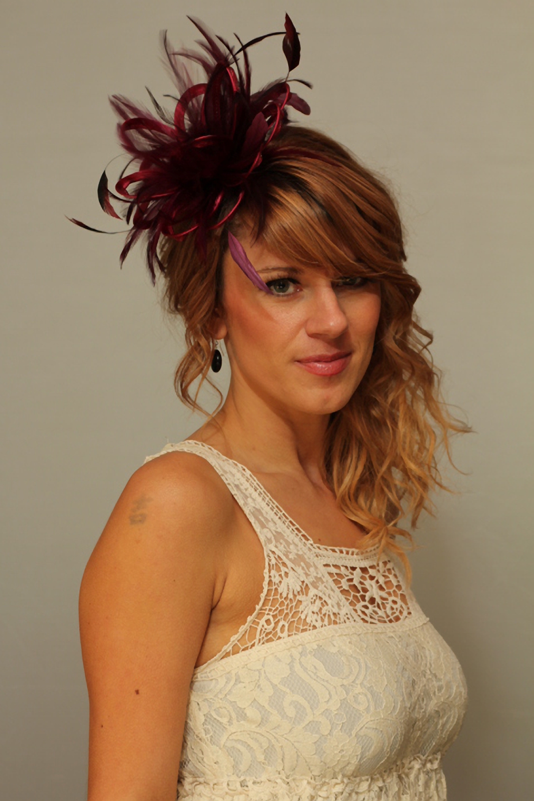 Burgundy Wine Small Satin Feather Fascinator hat – Abbie