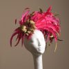 This is a very large Mohawk style pillbox fascinator made using lots of curled coque tail feathers, biots, hackle.