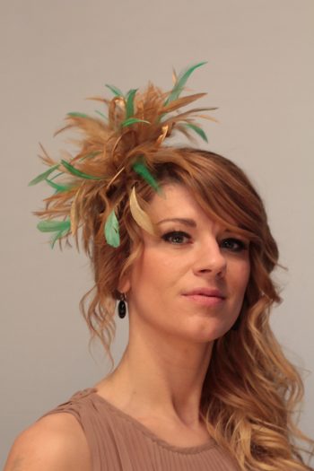 Gold and Emerald Green Satin Feather Small Fascinator hat – Abbie