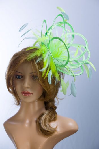 Lime Green & Baby Blue Medium Satin and Feather Fascinator hat – Martha