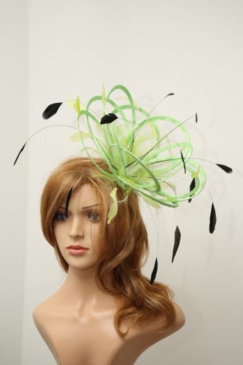 Lime Green & Black Medium Satin and Feather Fascinator hat – Martha