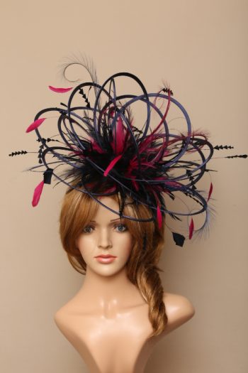 Navy Blue and Hot Pink Large Coque and Curled Pheasant Feather Satin Loop Fascinator Hat – MaryAnne
