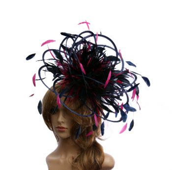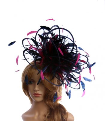 Navy Blue and Hot Pink Large Satin Loop Feather Fascinator hat – Sylvia