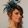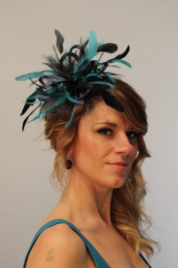 Navy Blue and Turquoise Feather Small Fascinator hat – Abbie