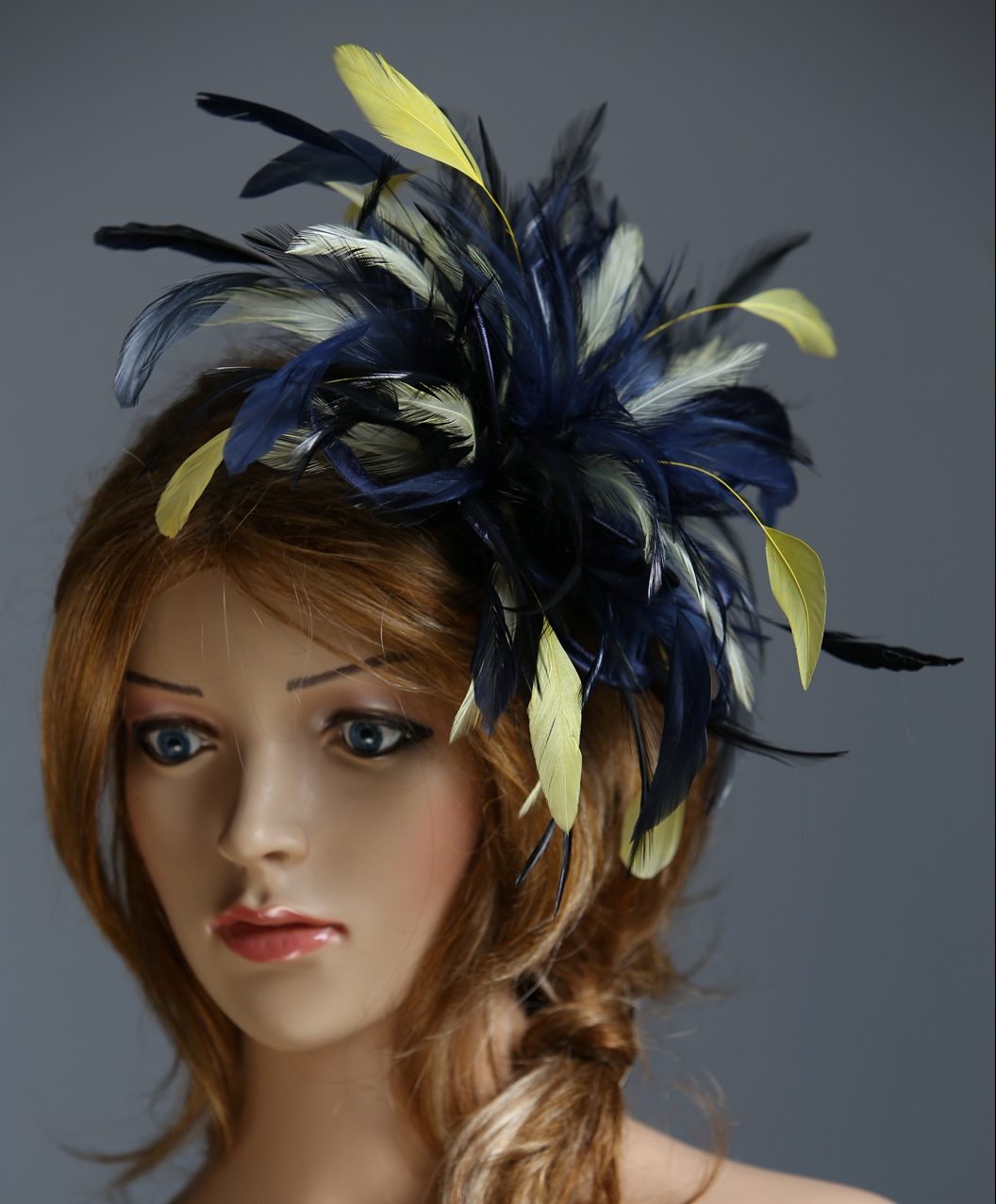 We can customize your hat further with a third feather colour, rhinestones or a veil.
