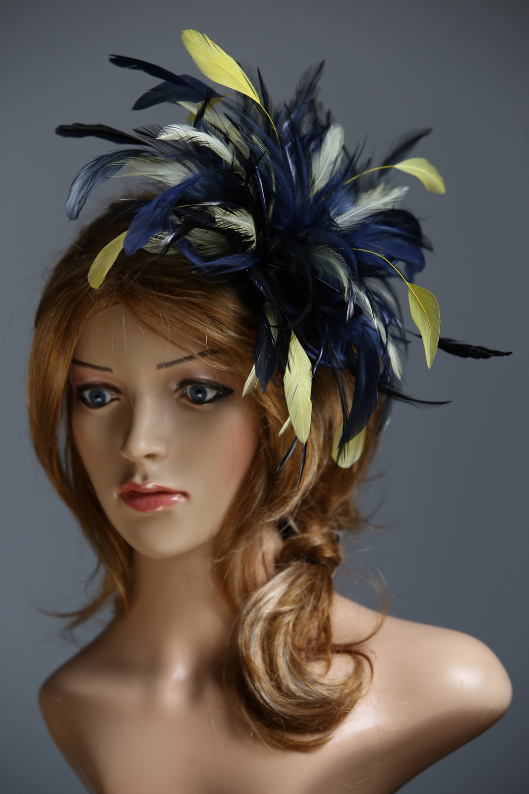 We can customize your hat further with a third feather colour, rhinestones or a veil.