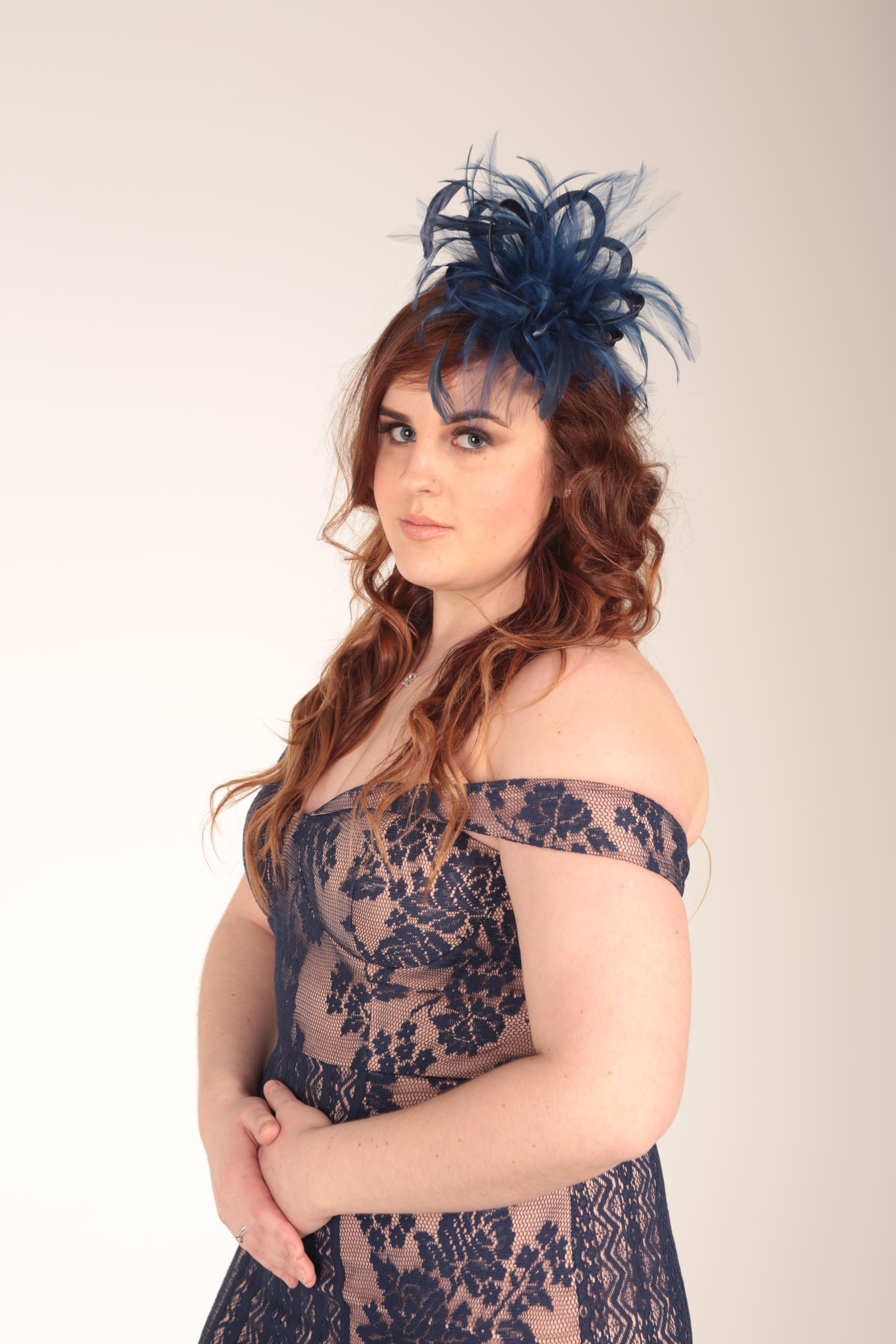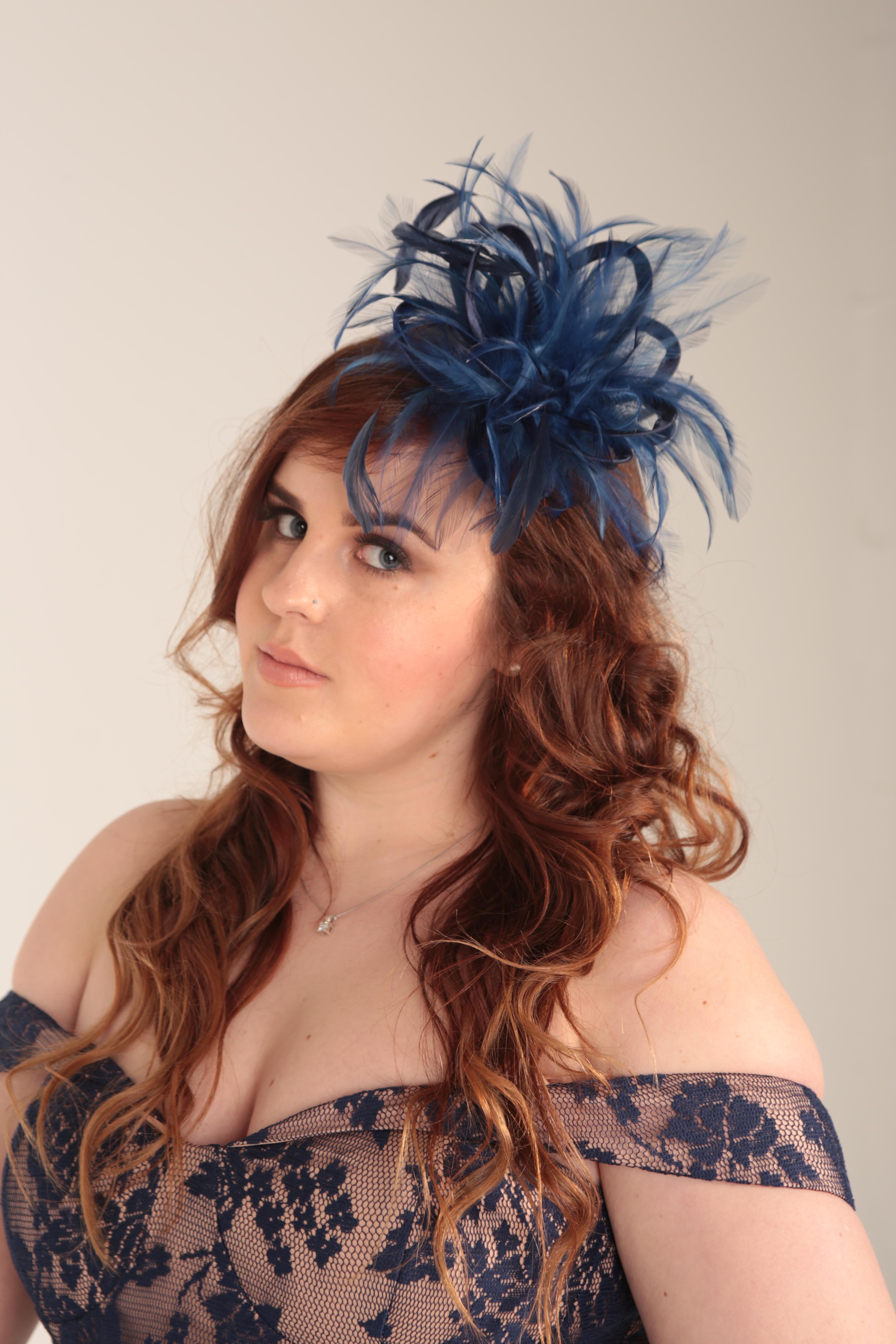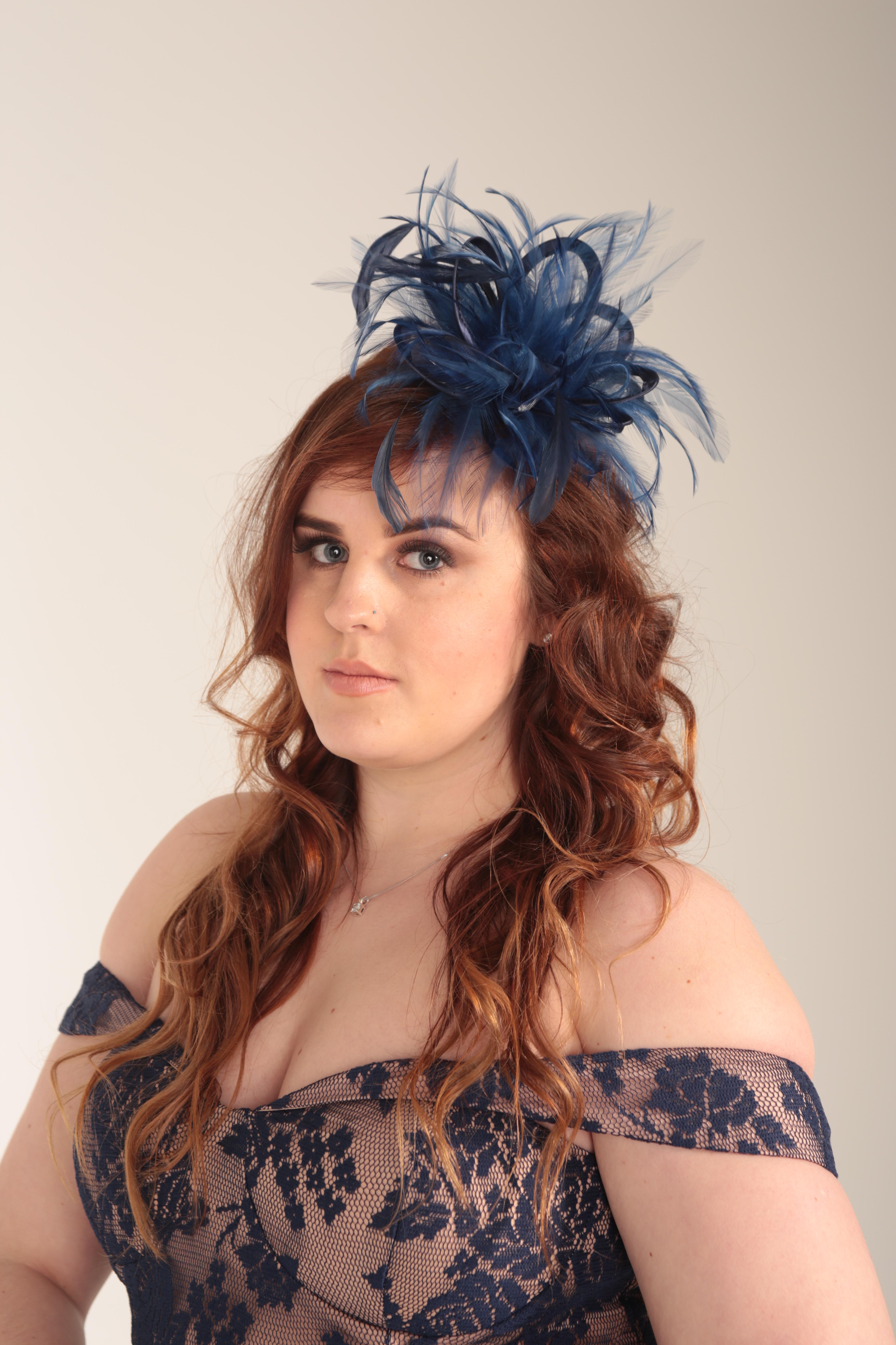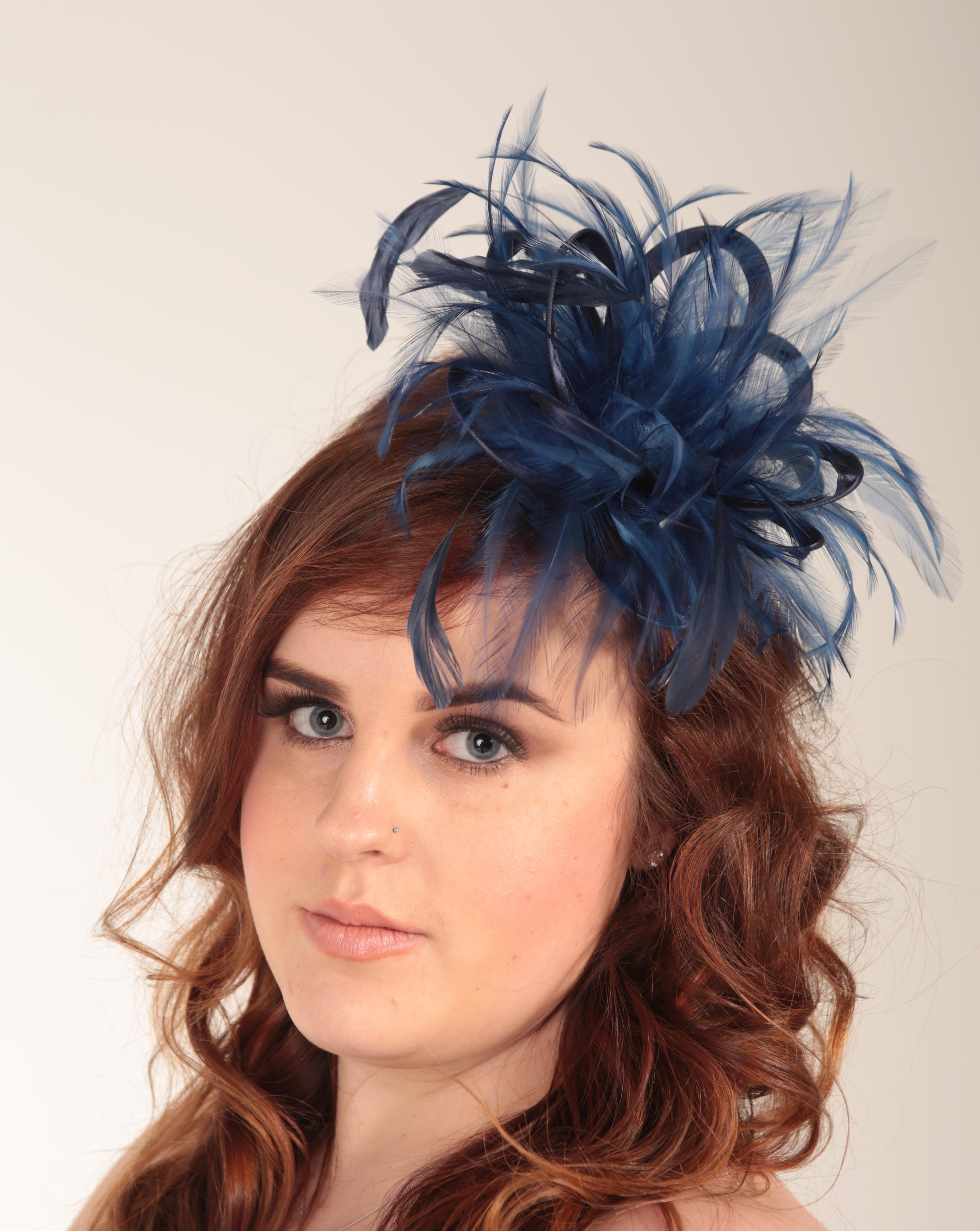We can customize your hat further with a third feather colour, rhinestones or a veil.