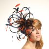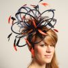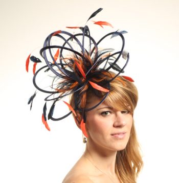 Navy Blue & Terracotta (Burnt) Orange Satin Feather Medium Fascinator hat – Martha