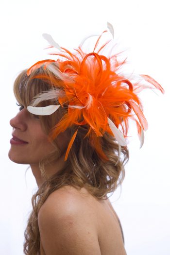 Orange and Ivory Satin Feather Small Fascinator hat – Abbie
