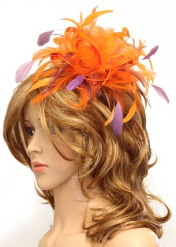 Orange and Purple Satin Feather Small Fascinator hat – Abbie