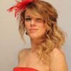 Red and Aqua Satin Feather Small Fascinator hat – Abbie