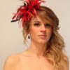 Red and Black Satin Feather Small Fascinator hat – Abbie