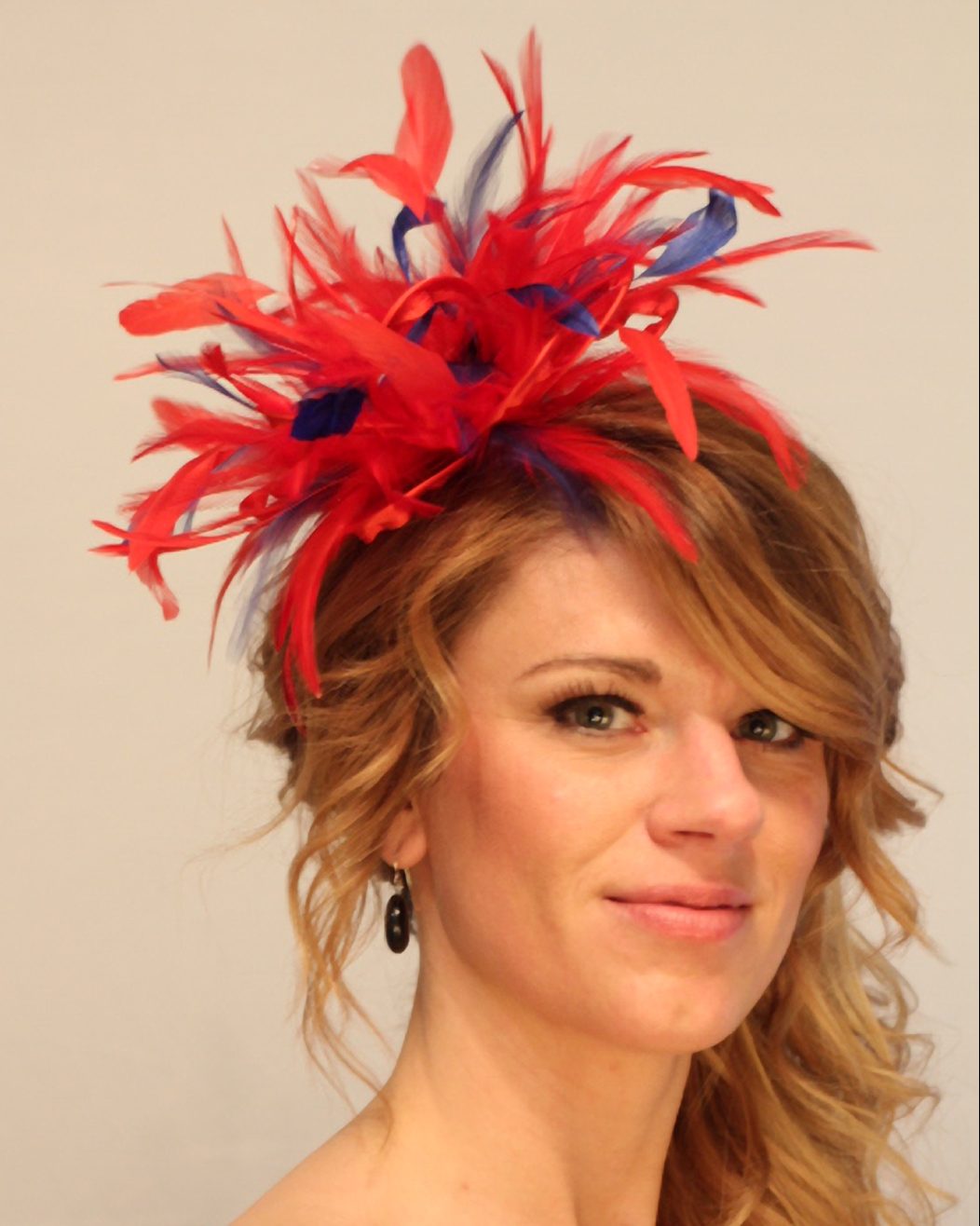 Red and Royal Blue Satin Feather Small Fascinator hat – Abbie