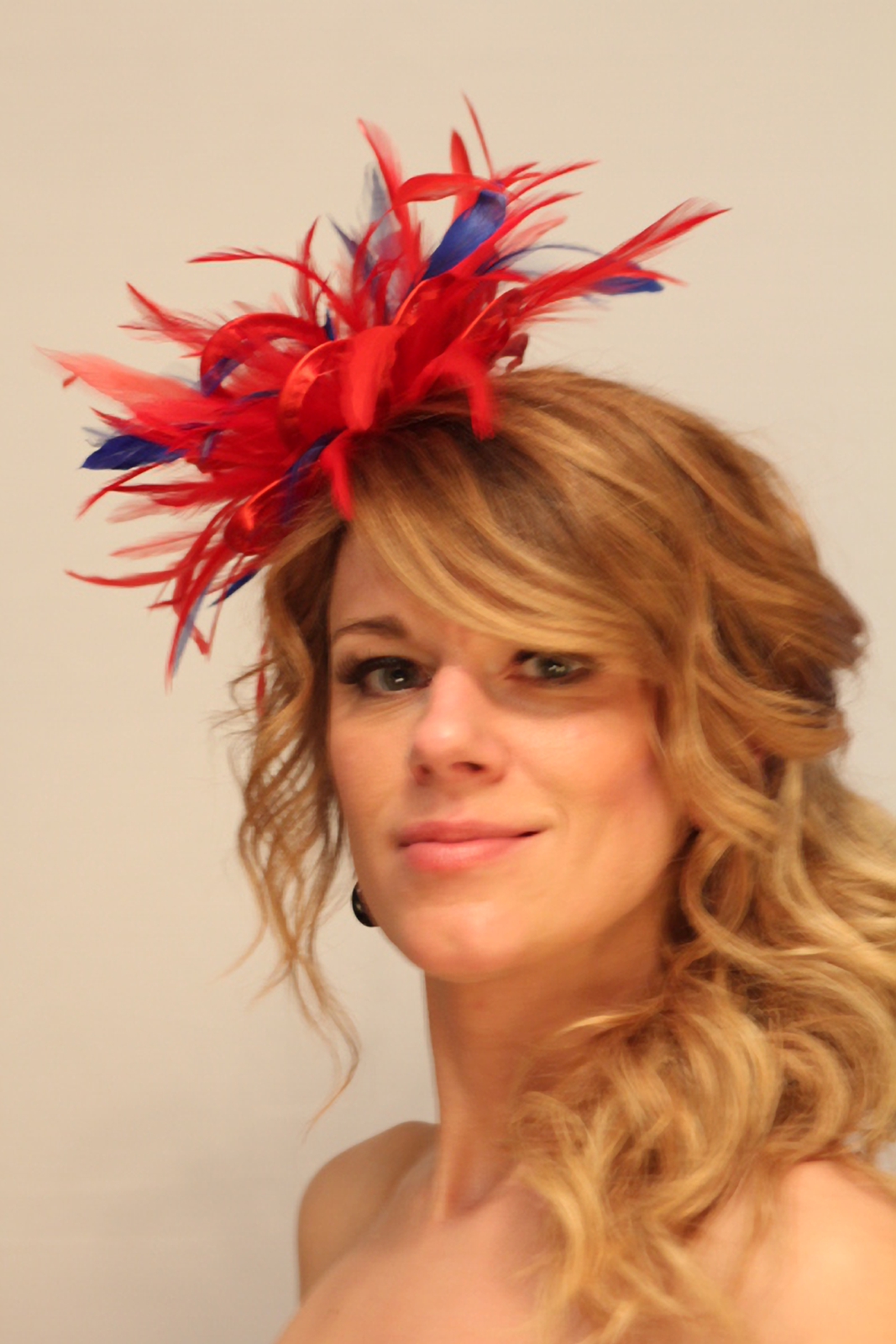 Red and Royal Blue Satin Feather Small Fascinator hat – Abbie