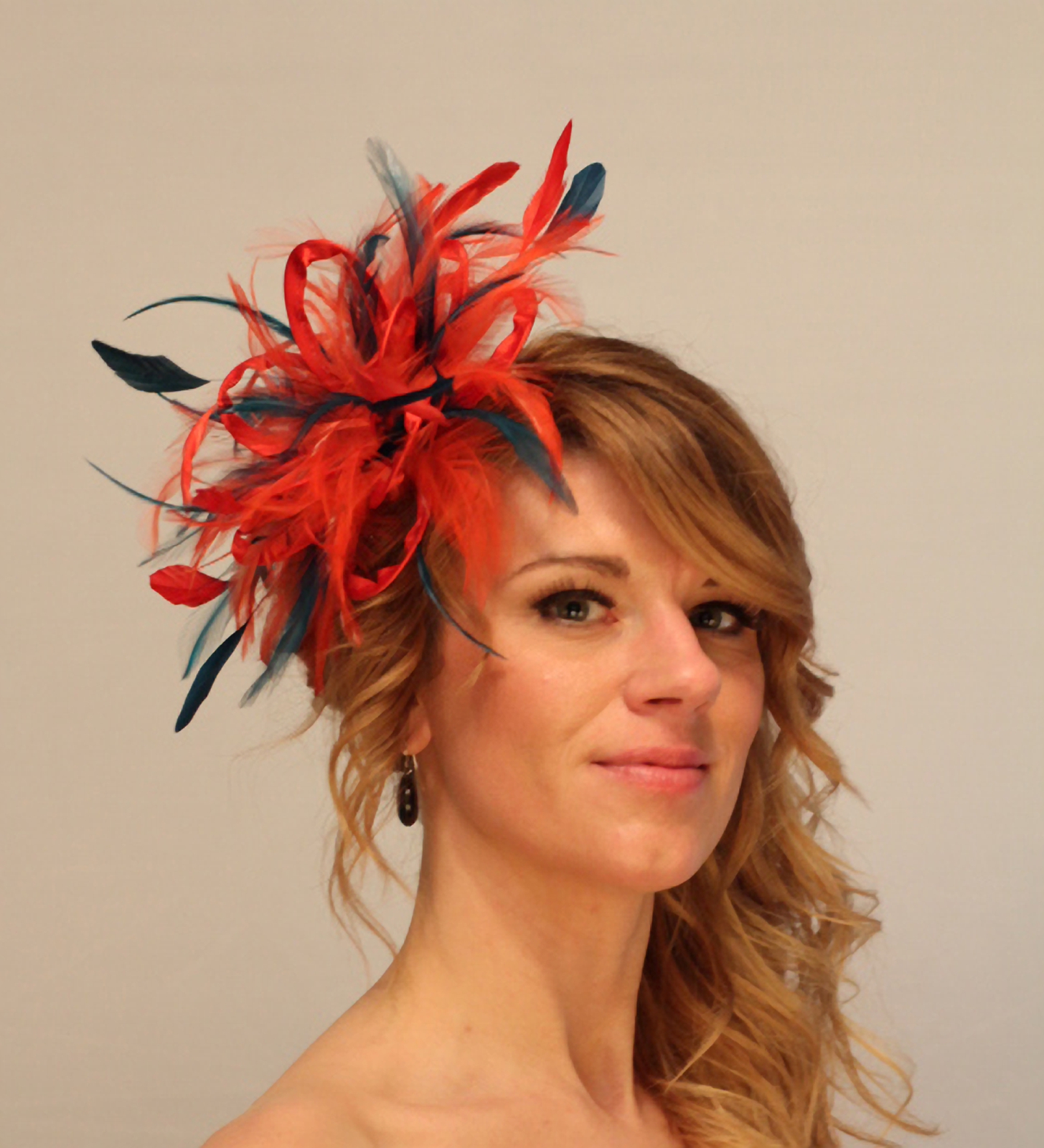 We can customize your hat further with a third feather colour, rhinestones or a veil.