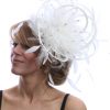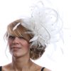 A medium fascinator hat made with satin loops and adorned with coque and hackle feathers. Rhinestones on wired stems which match the metal on your headband.