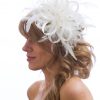 Rhinestone Satin Fascinator hat with feathers – White – Julie