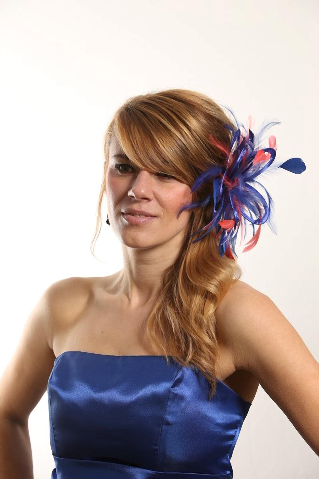 We can customize your hat further with a third feather colour, rhinestones or a veil.