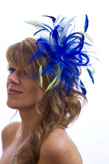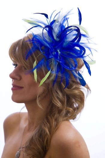 Royal Blue Satin and Feathers | Lime Green Highlight Feather Small Fascinator Hat | Abbie