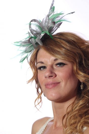Silver and Emerald Green Satin Feather Small Fascinator hat – Abbie