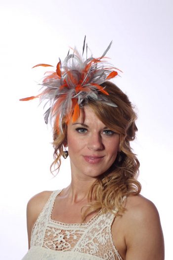 Silver and Orange Satin Feather Small Fascinator hat – Abbie