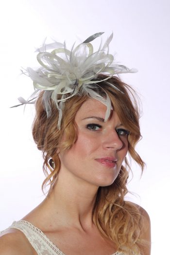 Small Cream Satin Fascinator hat with Silver feathers – Abbie
