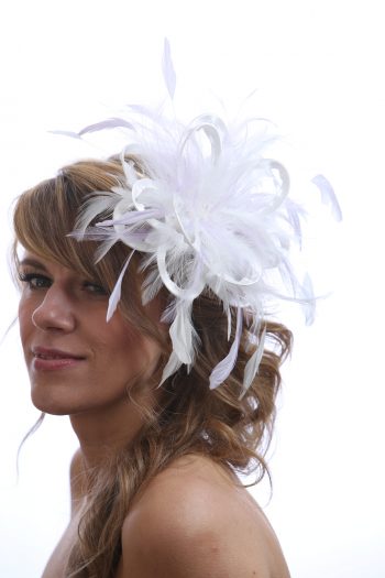 Small Ivory Satin Fascinator hat with lilac feathers – Abbie