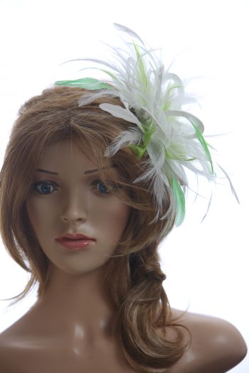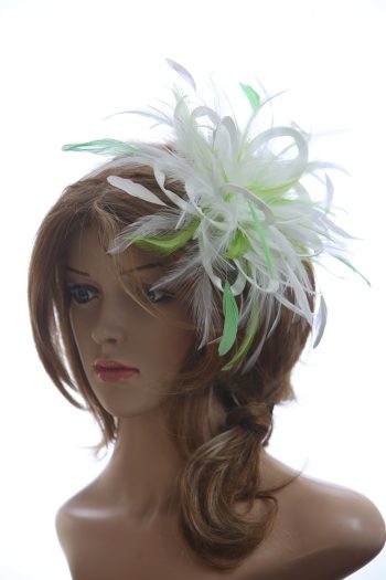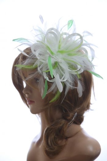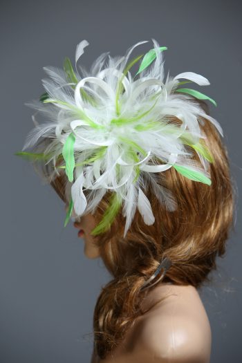 Small Ivory Satin Fascinator hat with Lime Green feathers – Abbie