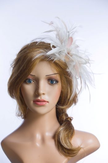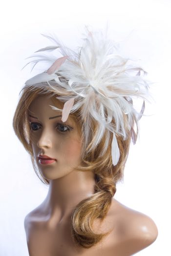 Small Ivory Satin Fascinator hat with Oyster Pink feathers – Abbie