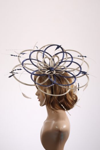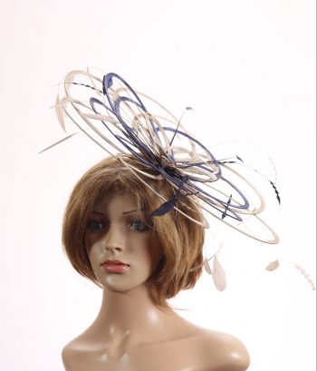 Taupe Nude and Navy Blue 3 Layer Satin Large Fascinator Hat – Daisy
