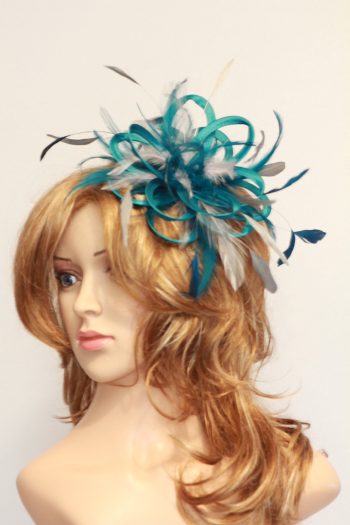 Teal and Silver Feather Small Fascinator hat – Abbie