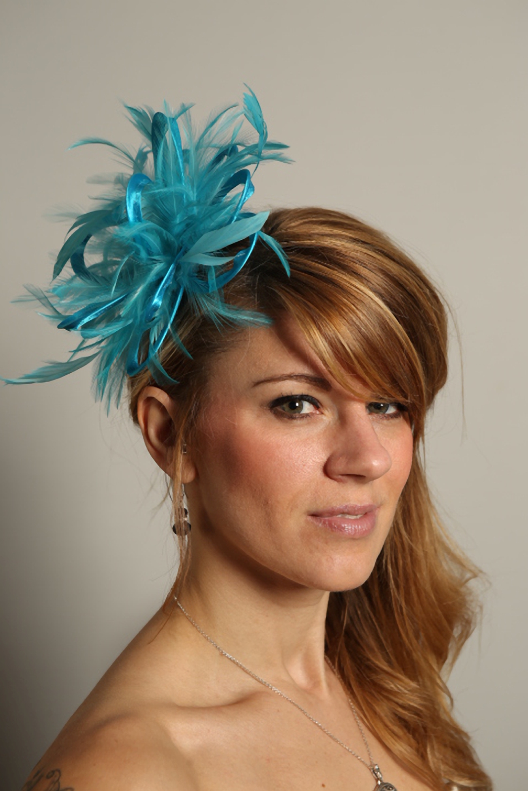 We can customize your hat further with a third feather colour, rhinestones or a veil.