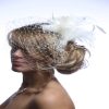 White Bridal Veil Ostrich Feather Rhinestone Trim Fascinator – Diana
