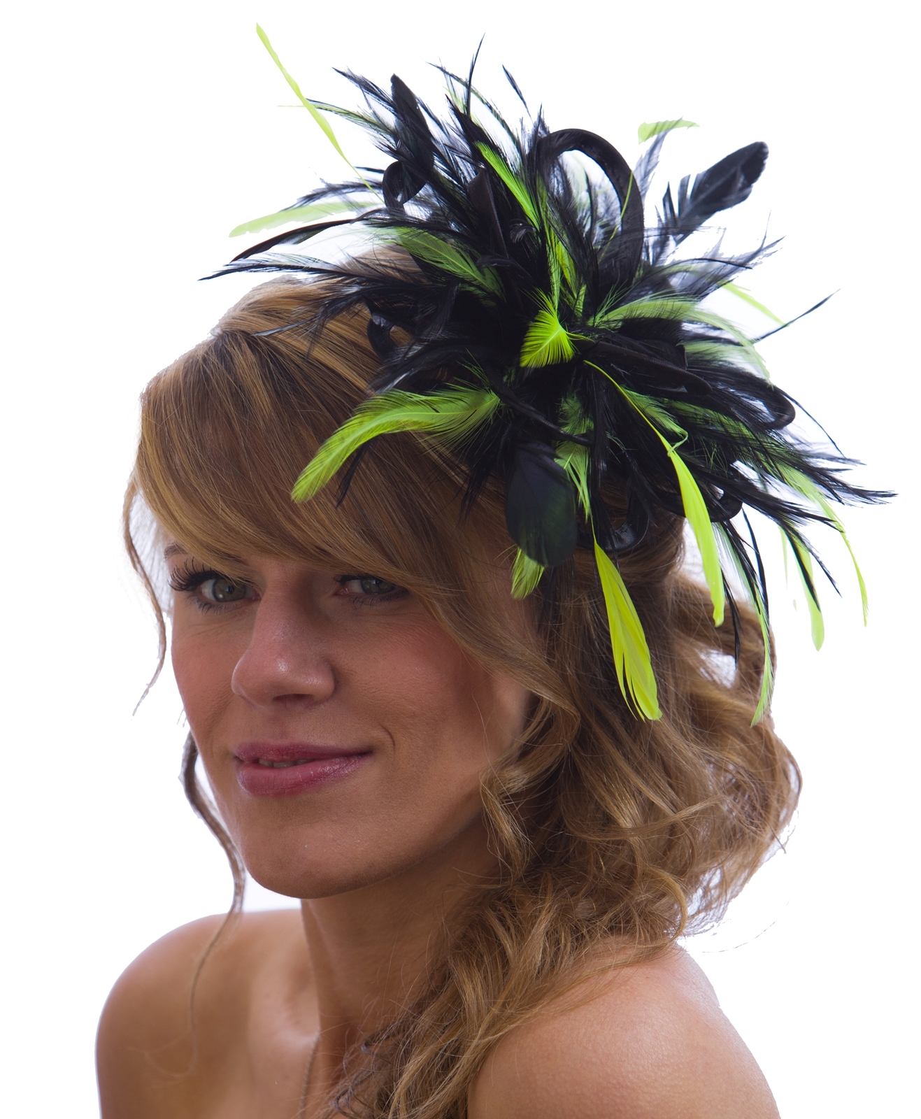 Black and Lime Green Satin Feather Small Fascinator hat – Abbie