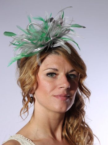 Silver and Emerald Green Satin Feather Small Fascinator hat – Abbie