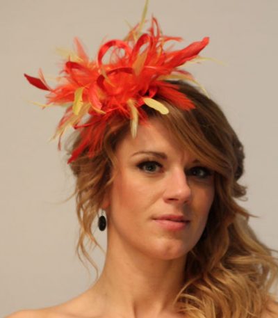Red and Orange Satin Feather Small Fascinator hat – Abbie